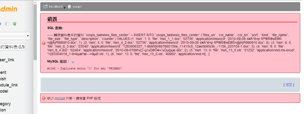 我的XOOPS原是BIG5編碼,以您建議方式用PHPMYADMIN下載改過編碼後重新上傳,其中一個資料庫出現以下訊息
