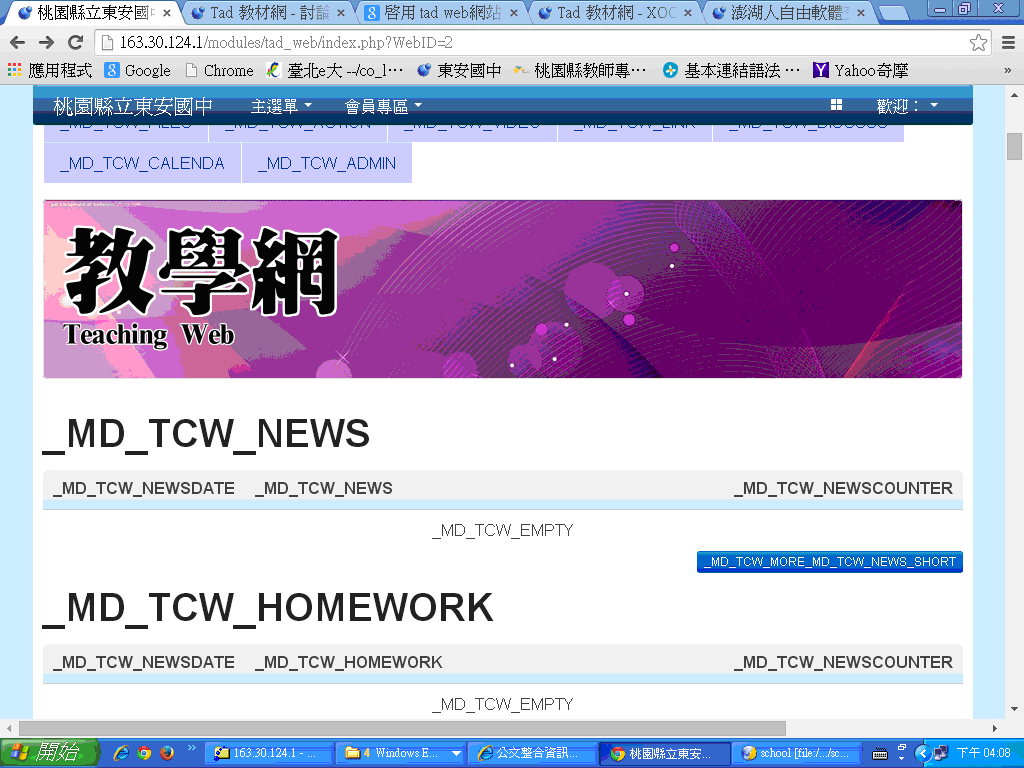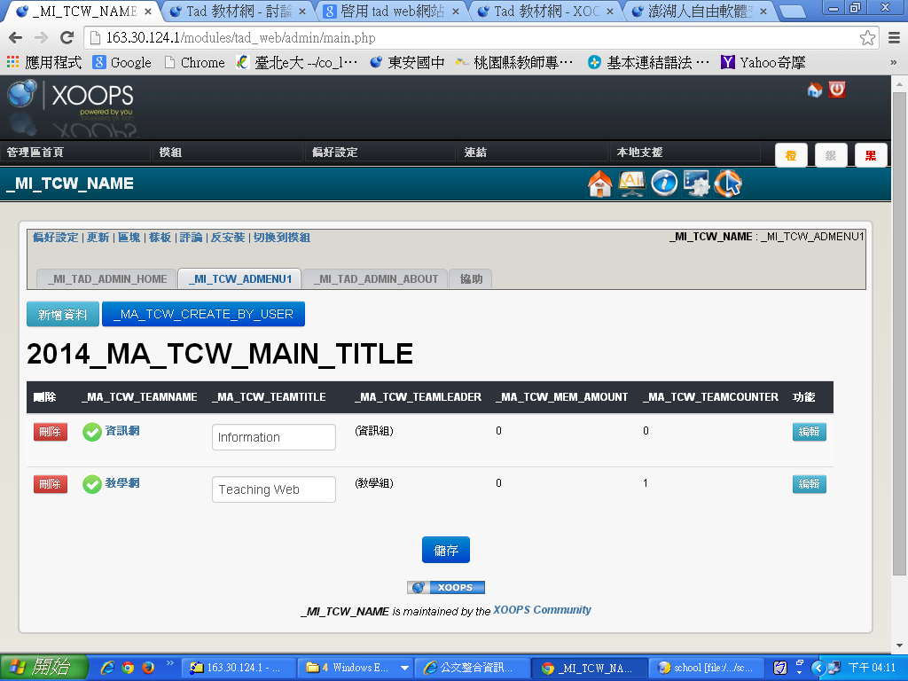 請問tadweb多個網頁的管理區塊在哪裡?已下載Tadweb模組並安裝完畢,但無法找到管理區塊業位置,以致無法編輯新增網頁,出現混亂的頁面(如附檔),且無法顯示中文模組設定,為什麼?(如附檔2)