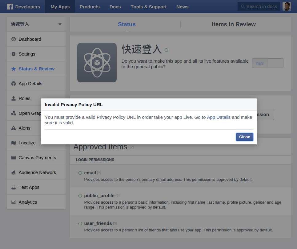系統叫我去App Detail 設定,但是我不知道要設定什麼 >"<