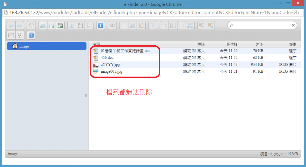 tad_form 上傳圖片或檔案時,在【瀏覽伺服器端】內的檔案都無法刪除,