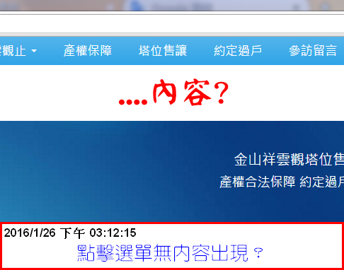 Tad老師,打擾您!可以請老師看一下站台嗎? 網站不知何原因,點了選單都無內容出現(資料庫健在),連絡主機商用備份還原,還是一樣?照著"自救十招"做了,仍無結果?懇請老師指導解惑!附網址帳密。若需資料庫帳密,隨傳隨到。謝謝老師!