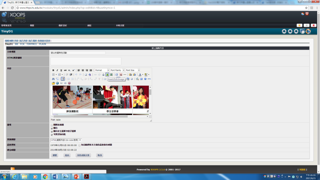 2.如圖檔,欲修改照片換上新的,點編輯(TI)進入畫面,卻找不到原本可以增加照片的地方,然後點了Insert/Edit Image,也不知該如何加照片?