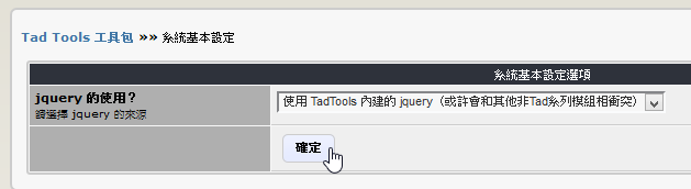 Tad Tools 工具包是一個模組。但並不直接提供什麼操作功能,而是把新的Tad模組中常會用到的功能集中在一起,例如FCK編輯器、jquery、表單驗證、分頁工具...等的常用工具集中,這樣不用每個模組都放,可大幅減少每個模組的體積,並且加速開發時程。