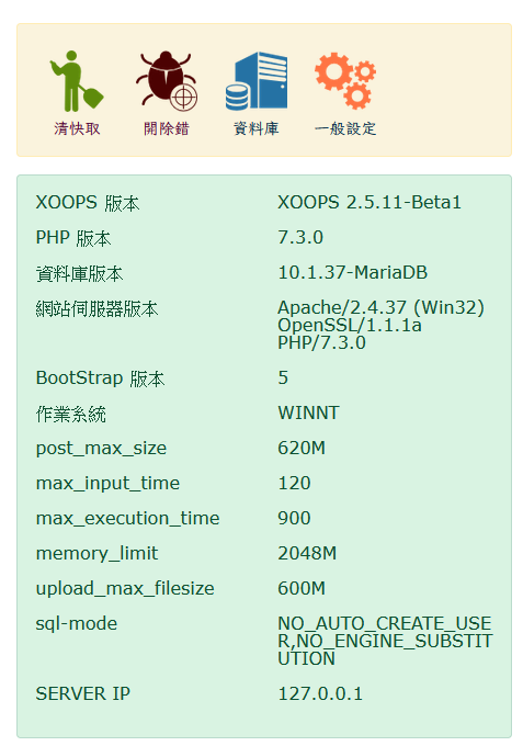 - 進入後台,「偏好設定→系統設定→一般設定」將「 控制台介面」選擇「tad_simple」即可。