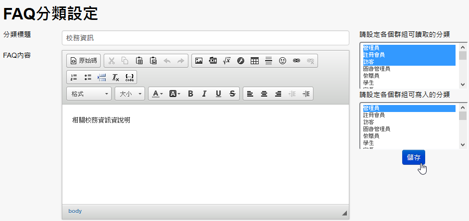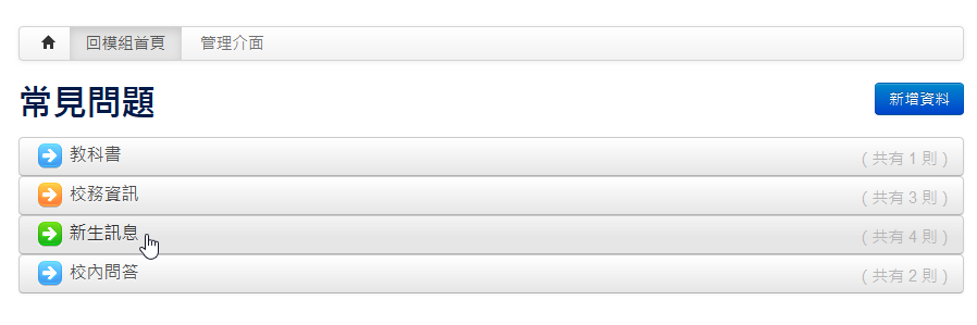 由於釋出模組時,有些問題會一再被問到,因此,很需要一個FAQ模組來整理一下常見問題,然而,目前XOOPS現有的FAQ模組中,介面稍嫌複雜了點,因此,做了一個算是小巧精緻可以直覺操作的FAQ模組來給自己用用~