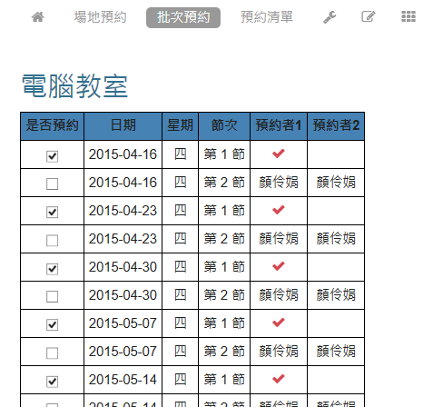 此模組的用途是提供場地預約的模組,提供個人預約及批次新增預約。