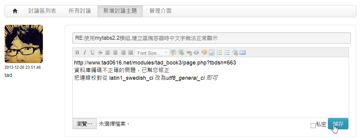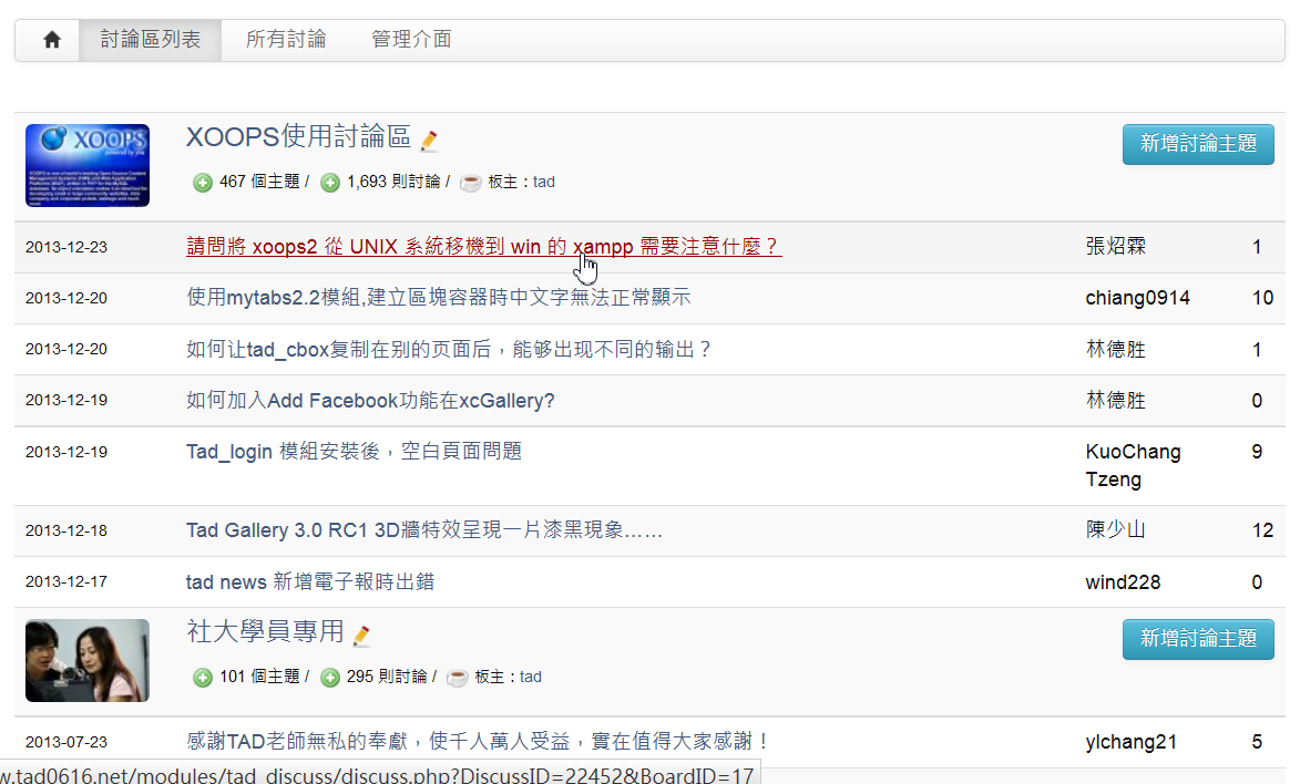 Tad Discuss 討論區模組 1.7 (2014-10-02 22:38:04 起被下載 1258 次)