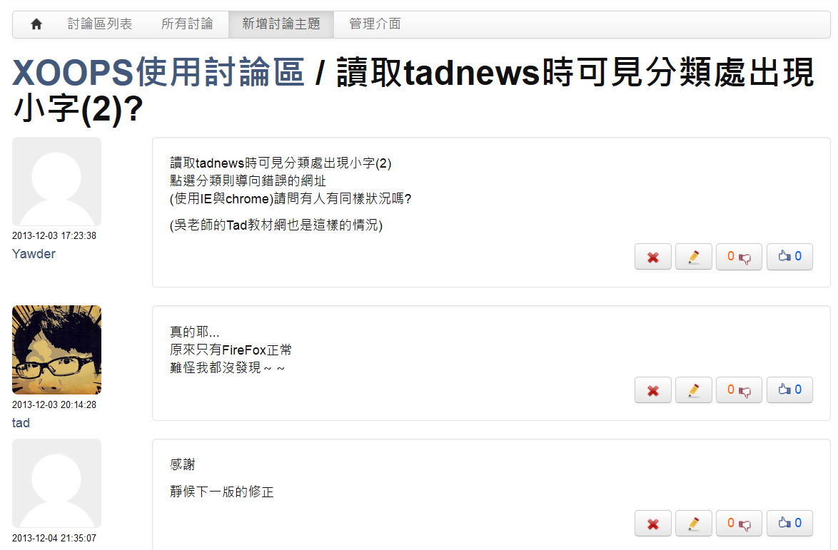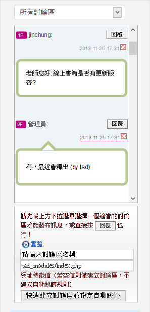 Tad Discuss 討論區模組 更新項目