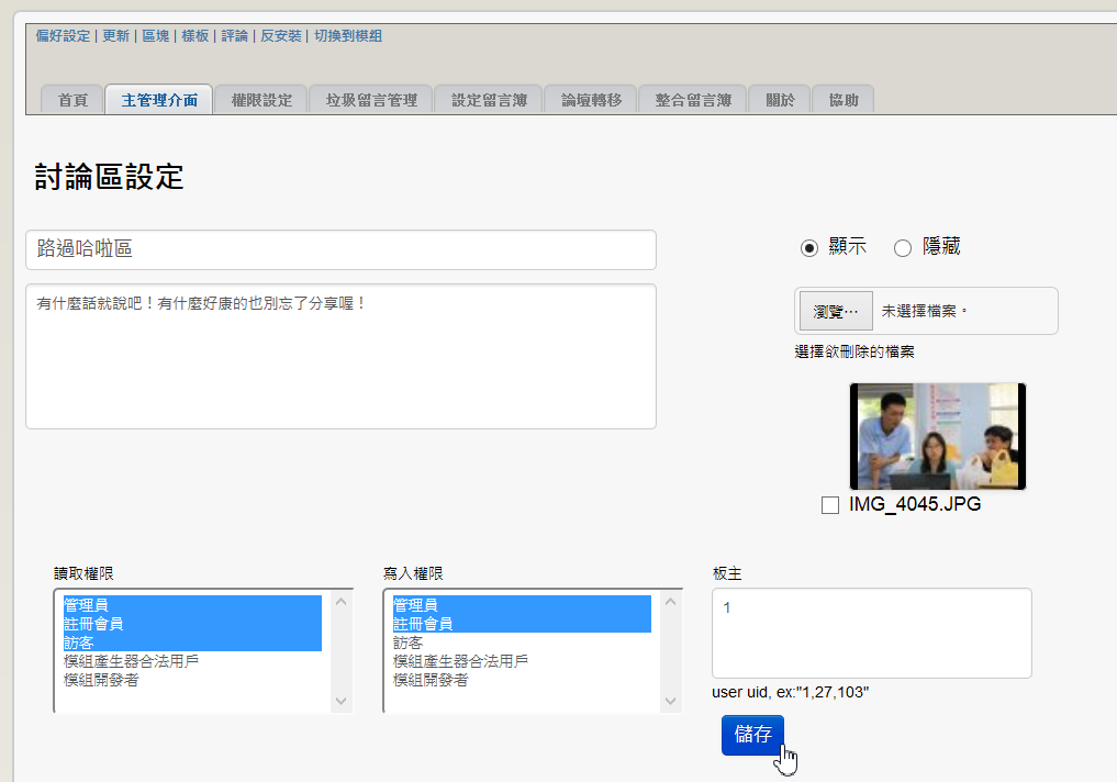 5. 修正當使用者只有站長一人時討論區無法選擇版主的bug