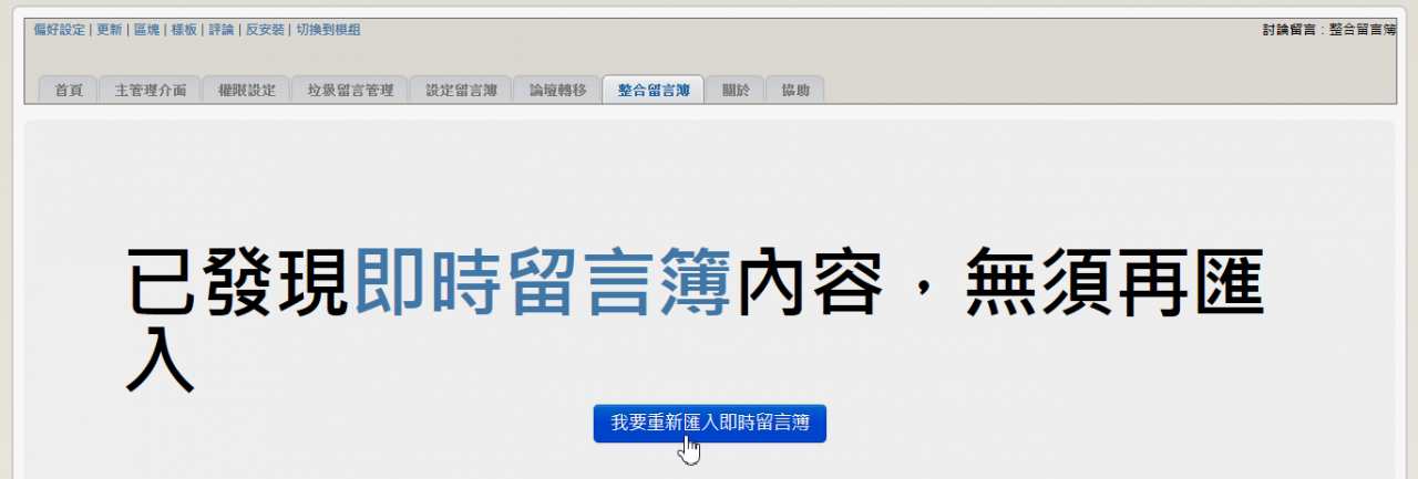 2. 匯入即時留言簿時,可精準抓到管理員姓名及uid(之前已經匯入的話,可利用重新匯入的功能來修正之即可)