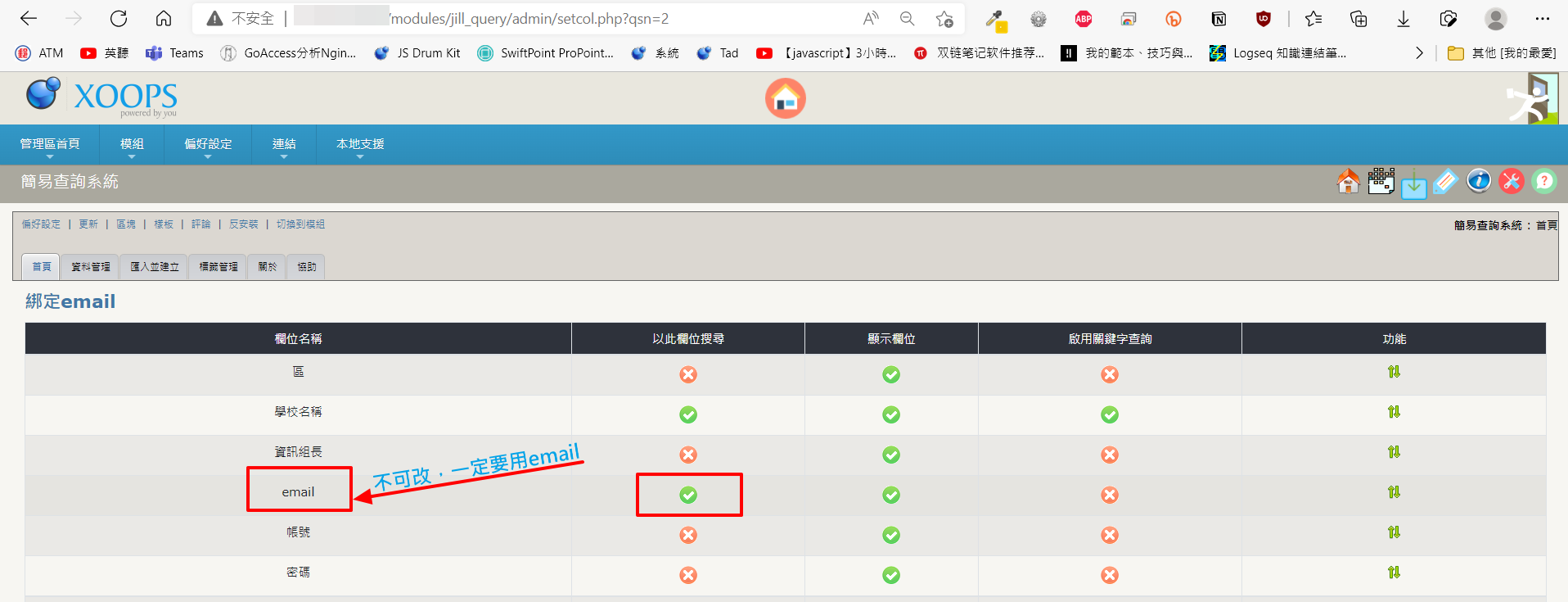 警告:本模組不建議放有個資的紀錄,如:身分證字號、出生年月日、電話.......等敏感欄位。若權限或搜尋條件設置不當,都將導致個資外洩。