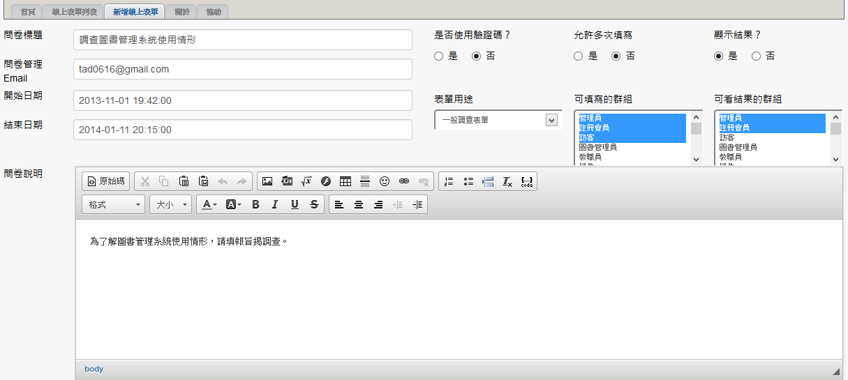 Tad Form 萬用表單模組 3.1 (2014-06-10 14:17:43 起被下載 1701 次)