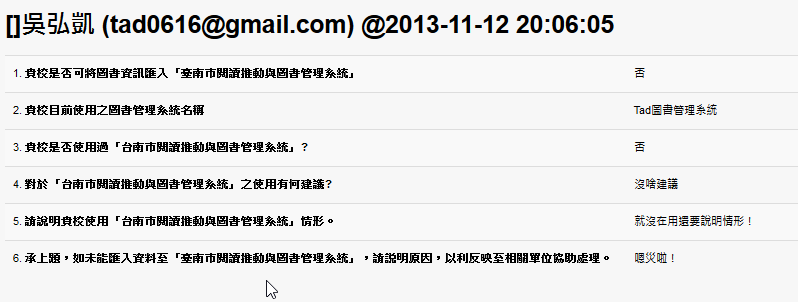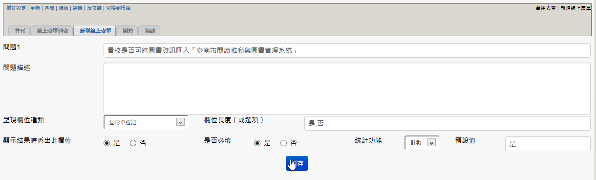 2. 修正部份填報在未有人填時,觀看結果會出現空白的情形。